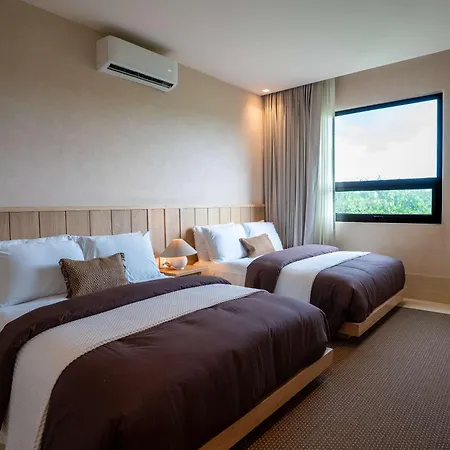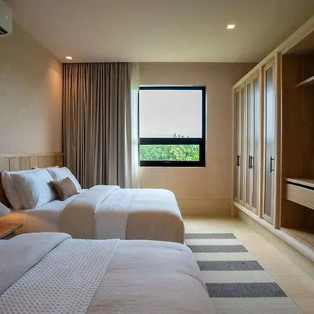 Der er også et fuldt udstyret køkken, hvor enkle måltider kan tilberedes. Det tager 10 minutter med bil at komme til Isla Mujeres lufthavn.